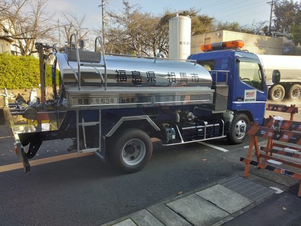 9月26日(月)に、今回の断水被害に対して476km離れた福島県相馬市より給水車(3t)が応援に駆けつけてくれました!
