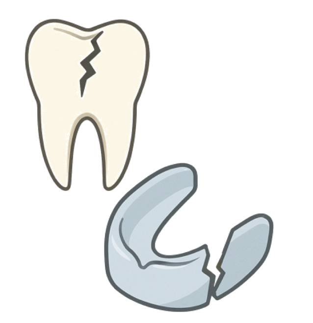 【歯やマウスピースに起こる変化】 強い歯ぎしりやくいしばりが長期間続くと、歯や被せ物、詰め物、マウスピースに大きな力がかかる状態になることがあります。その結果として、歯や補綴物(ほてつぶつ)にひびや欠けがみられたり、マウスピースが摩耗・破損したりするケースが報告されています。 大切なのは、これは「歯が弱いから起こる」問題ではなく、噛む力が過剰にかかっている状態が続いている可能性がある、という点です