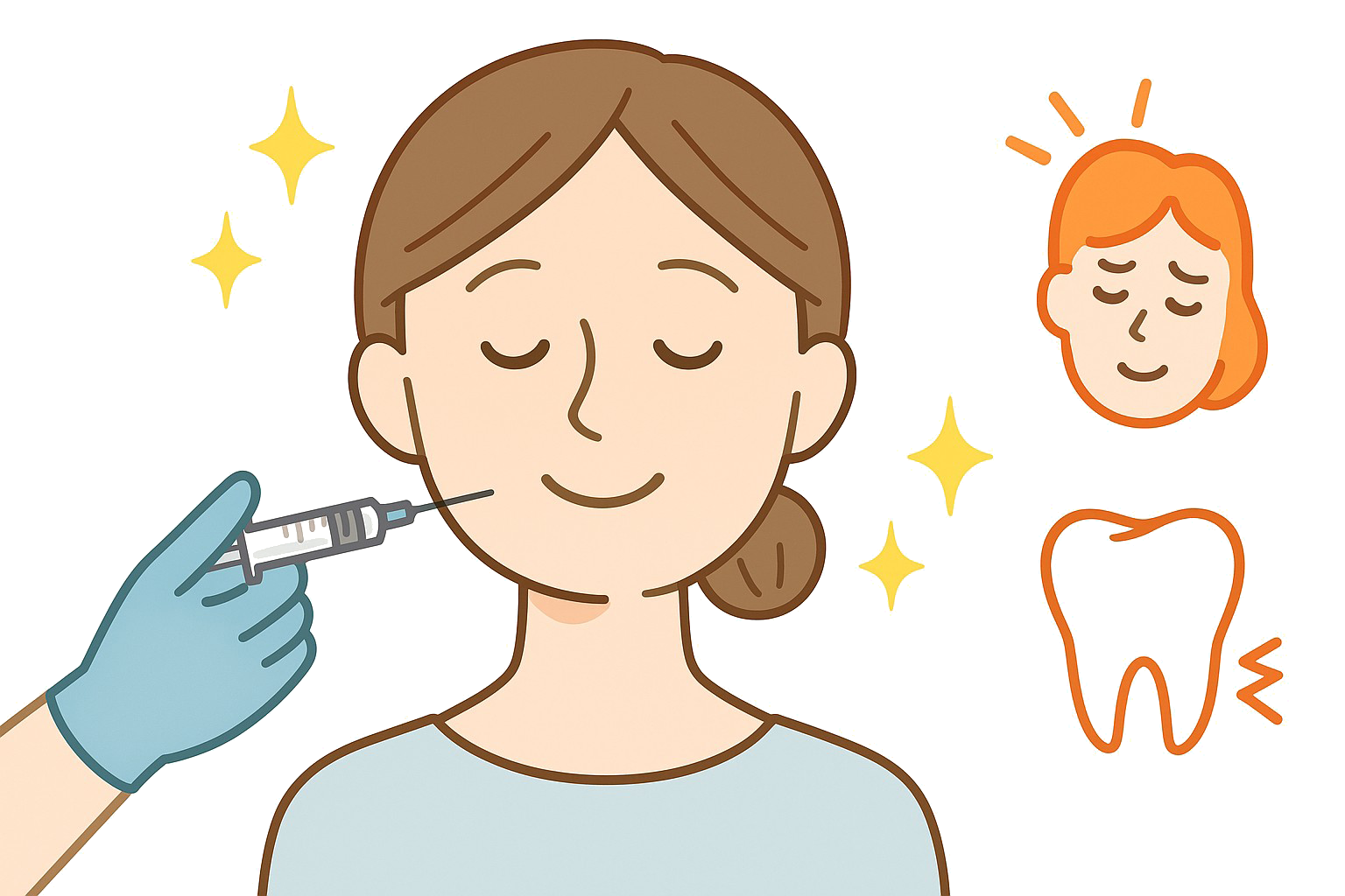 この治療は、 ・歯ぎしり・くいしばり ・顎関節症 ・筋緊張性頭痛 などに対して、筋肉の使いすぎを抑える目的で行われます。 美容目的の「顔痩せ・エラ治療」とは、目的・考え方が異なります。